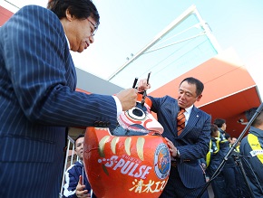 「小林伸二監督、選手の皆さま、そしてサポーターの皆さまもおめでとうございます。エスパルスはこの街の宝ですが、ファン・サポーターの皆さまも清水の宝物です!来季も一緒に戦いましょう!」と激励をいただきました。