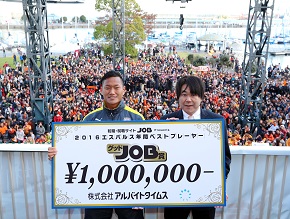 その後、転職・就職サイトJOB presents 2016エスパルス年間ベストプレーヤー『グッドJOB賞』表彰式がおこなわれ、鄭大世選手が選出されました。