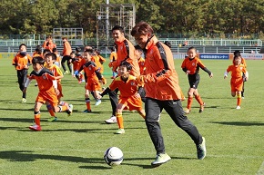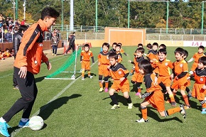 グラウンドでは、エスパルスサッカースクール生限定に、選手と一緒になってサッカーを楽しむことができるサッカーパークが開催され、選手との会話やプロのプレーを目の前にして、スクール生の子供たちは思いっきりサッカーを楽しんでいました。