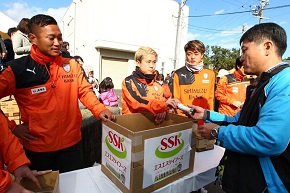 SSKドレッシングを手渡しする大前元紀選手 ©︎︎︎S-PULSE