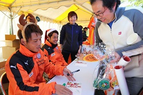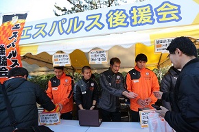 エスパルス後援会、グッズ販売のコーナーでも選手たちがブースに入り、和やかな雰囲気の中、皆様とふれあいに終始笑顔で商品の販売や後援会のPRをおこないました。
