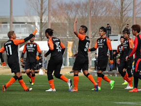 先制点を決め、喜び合う選手たち ©︎︎︎S-PULSE