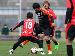 ケガや体調不良、また新卒選手が新人研修で不在と、人数も少なく、本来のポジションでプレーできない選手もおり、また練習生も加わる中で難しい状態にあることは間違いない。それでも、失点直後には、相手陣内で得たFKに杉山浩太が直接狙いバーに当たるという惜しいチャンス。また練習生の和田健太郎がGKをかわしてシュートも、左ポストに直撃するなど、得点の匂いはあった。
