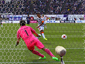Though the game’s only goal was to come via the spot, that it was the Tese who dispatched it was fitting given the constant threat the number 9 posed the home goal. An early example came in the 11th minute when, having latched on to Matsubara‘s fine through pass, he drove a shot narrowly wide.