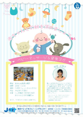 エスパルスおよび静岡市まちづくり公社が指定管理者として管理運営を行っている「清水ナショナルトレーニングセンターJ-STEP」において、5月27日(土)から開催します『ベビーマッサージ&産後ヨガ』への参加者を募集いたします。