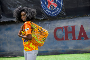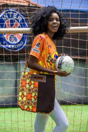 同社の主力商品である「Akelloバッグ」が、清水エスパルスオリジナルバージョンとして登場。「エスパルスオレンジ」を中心に選ばれたアフリカンプリントの布を使い、清水エスパルスのために特別に作られました。