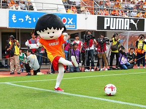 この日は、「ちびまる子ちゃん」が来場し、試合開始前にはキックインセレモニーを行い、スタンドを沸かしました。