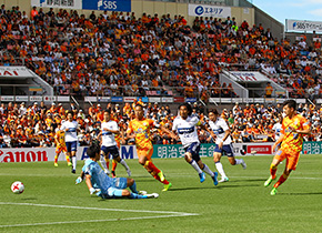 No the first half what would the story of the whole game, S-Pulse early domination was brought to nil by a combination of a counter attack and gave a soft goal to Matsubara who delivered a precise shot along the ground inside the far post.