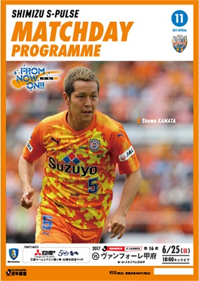 今節の表紙はDF5.鎌田翔雅選手 ©︎︎︎S-PULSE