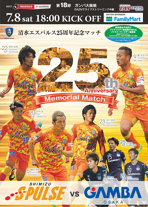 エスパルスでは、ホームゲーム【7月8日(土)18:00 ガンバ大阪戦@IAIスタジアム日本平】の試合告知のため、JR静岡駅、草薙駅、清水駅、沼津駅、静岡鉄道新静岡駅、新清水駅の6駅にて試合告知チラシの配布を実施いたします。