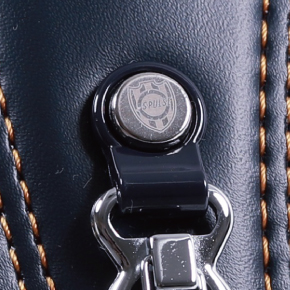 メインカラーには、性別を問わず使用しやすい、上品な濃紺を採用。全体に施されたオレンジ色のステッチ、チームエンブレムやロゴの型押しで、さりげなくエスパルスをアピール。機能面では衝撃吸収クッション入り肩ベルトやワンタッチ錠前など、使いやすい工夫が盛りだくさん。