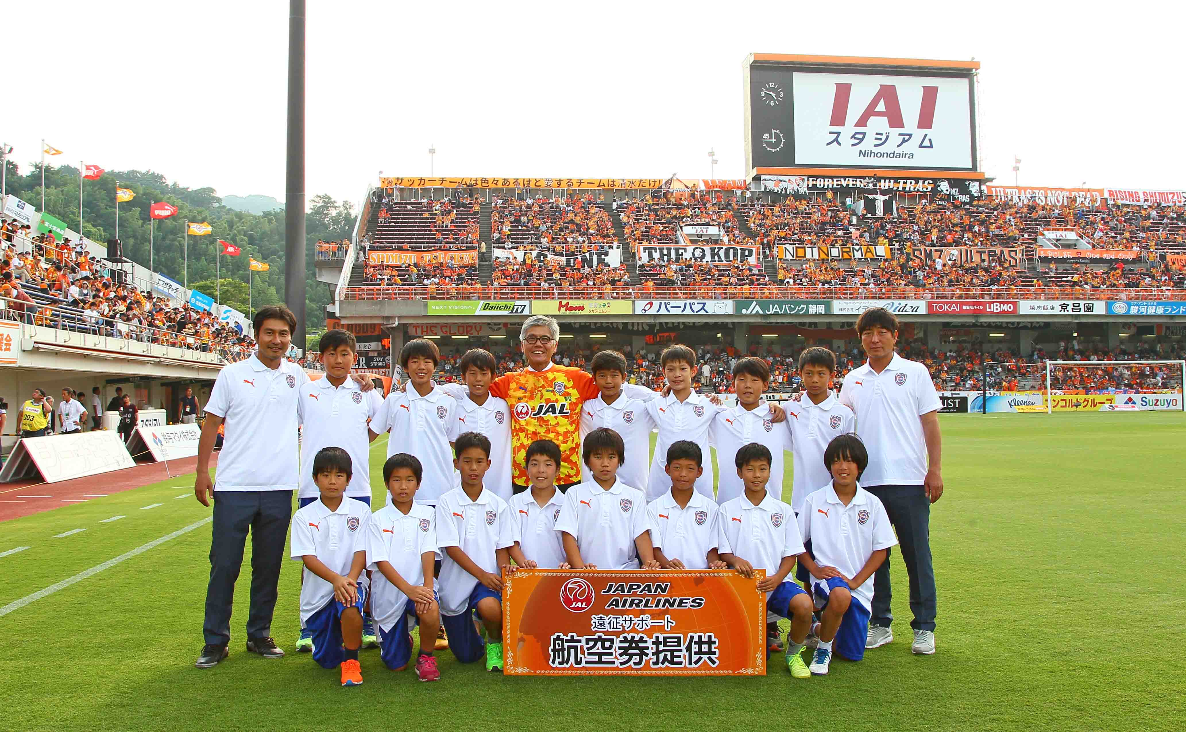 エスパルスU-12海外遠征壮行会にて、日本航空 藤田直志 代表取締役副社長より航空券が贈呈 ©︎︎︎S-PULSE