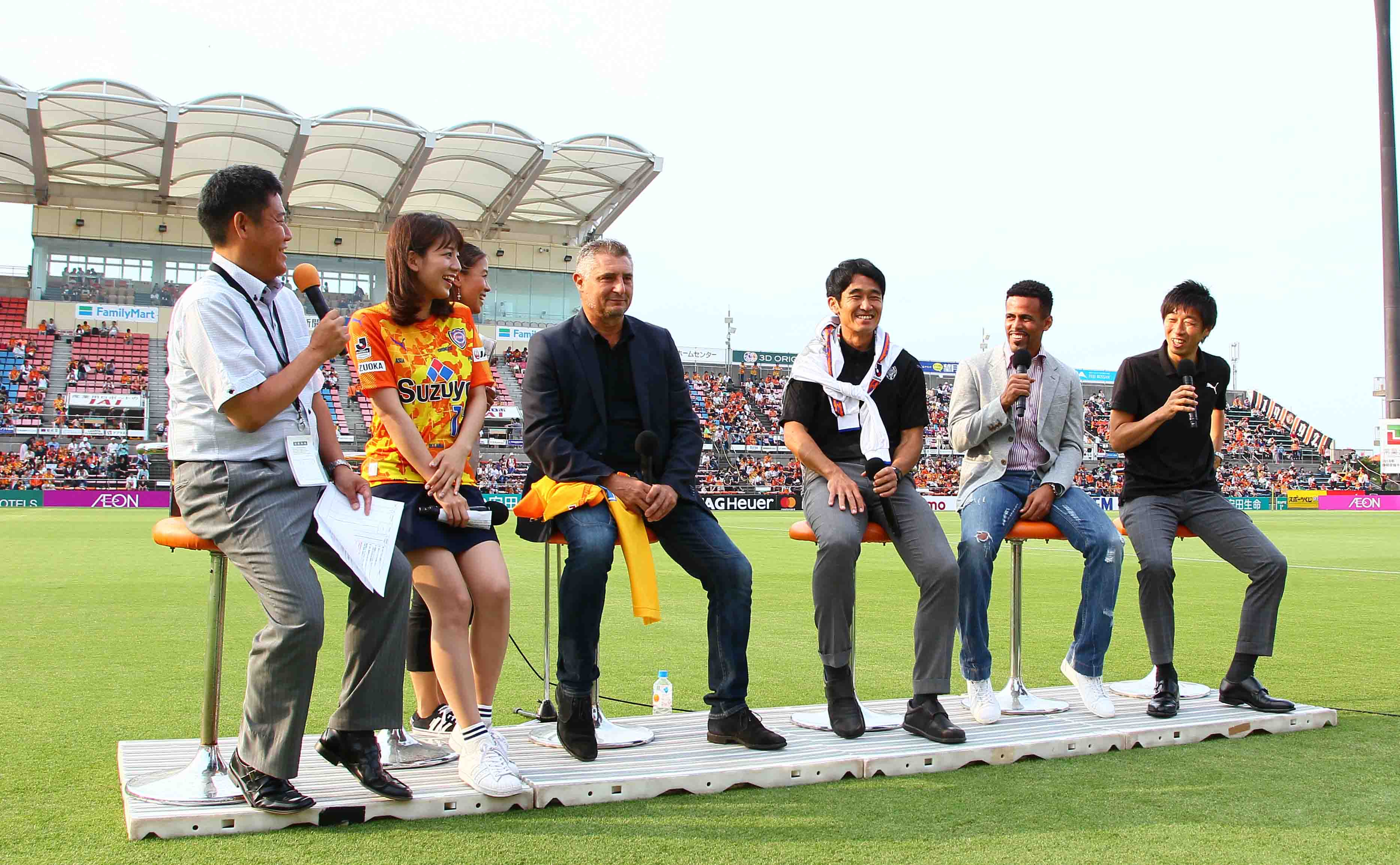 25周年記念トークショーには、マッサーロ氏、三都主アレサンドロ氏、佐藤美希Jリーグ女子マネージャーが参加 ©︎︎︎S-PULSE