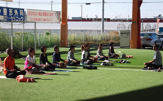 人工芝のピッチで太陽の光を浴びながらヨガを楽しみます。本来“ヨガ”という言葉には結ぶ、つなげると言った意味があります。毎日が忙しくて疲れたりストレスを感じている方、本来の自分を取り戻してみませんか?体の硬い方、頭の硬い方、ヨガは初めてという方もお待ちしています。