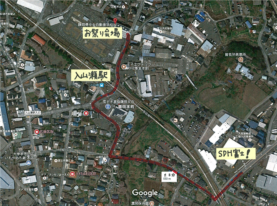 入山瀬駅すぐ目の前なので、電車でお越しいただく事をお勧めします。