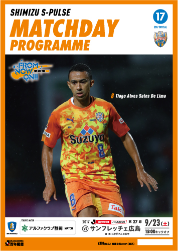 今節の表紙はFW8.チアゴアウベス選手 ©︎︎︎S-PULSE