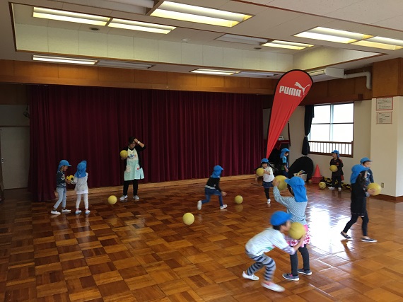 エスパルスアカデミーは10月25日(水)、中藁科こども園を対象にスポーツ巡回教室を実施しました。