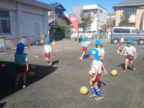 エスパルスアカデミーは10月26日(木)、ゆたか保育園を対象にスポーツ巡回教室を実施しました。