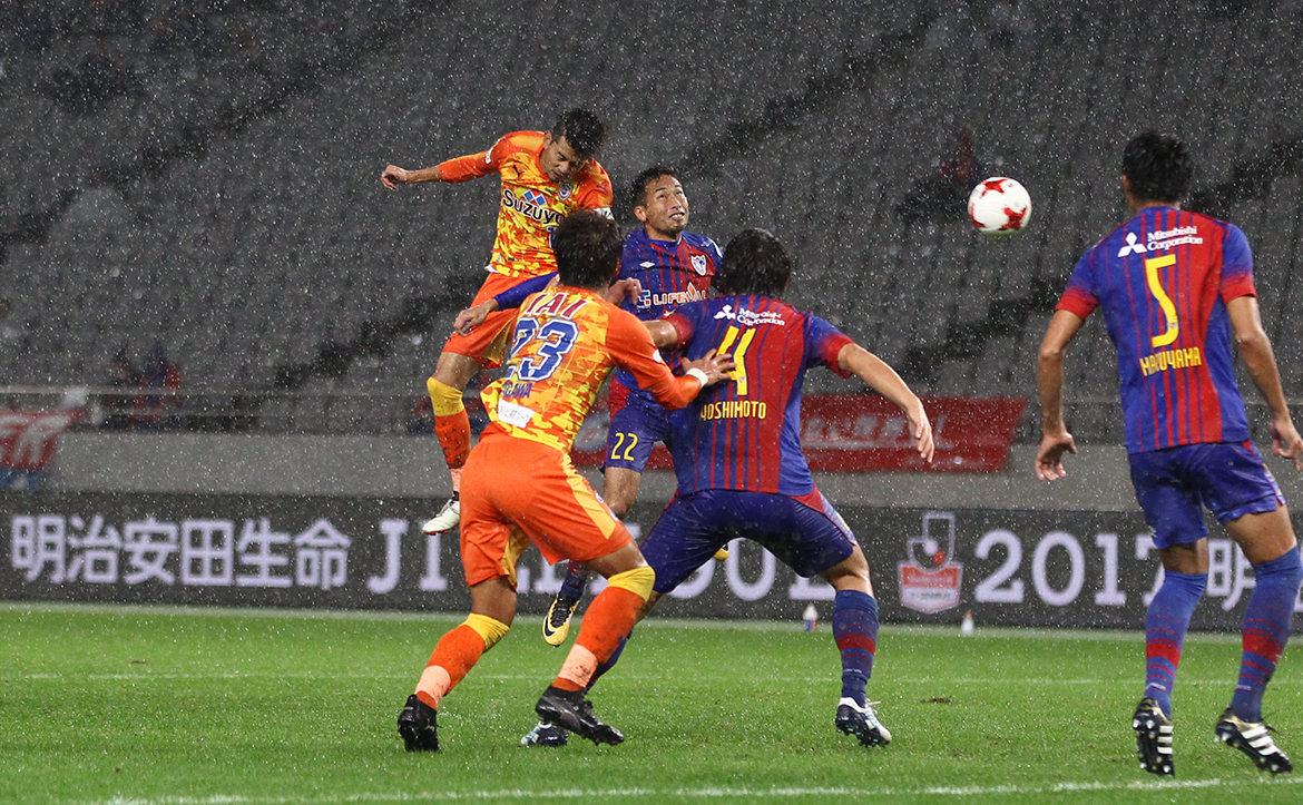 S-Pulse followed its usual 4-4-2 strategy against FC Tokyo adopting a somewhat compact 3-4-3 formation.This match saw the return of Yosuke Kawai after an 8-month absence due to a bad Achilles tendon rupture injury and also that of Matsubara who suffered only a single game ban after his red card against Jubilo to give more solidity both in defense and midfield.