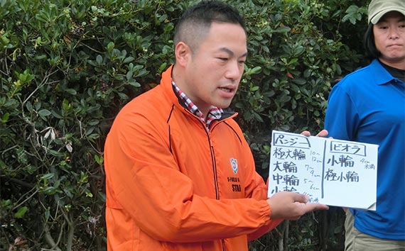 パンジーの説明をする会員交流委員会の佐潟委員長 ©︎︎︎S-PULSE
