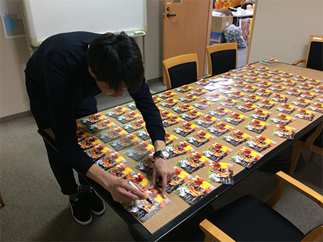 ポストカードにサインをする杉山選手② ©︎︎︎S-PULSE