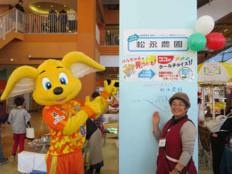 パルちゃんと一緒に「エコクイズに挑戦!」では、豪華景品ゲットを目指して、子どもから大人まで楽しんでクイズに参加してくれました。エコクイズの後、マルシェ内を歩いたパルちゃんは、出店店舗での記念撮影や多くの方に記念撮影や握手を求められ、皆さんとのふれあいを楽しみました。