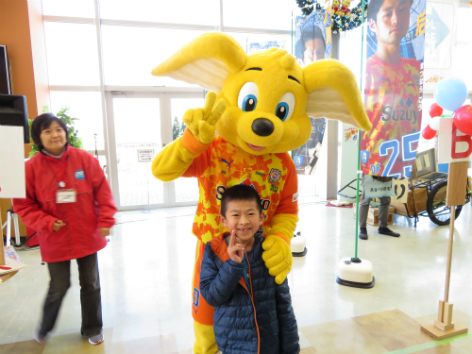 これは、エスパルスが静岡市と取り組む国民運動「COOL CHOICE(賢い選択)」普及のために開催されたイベントで、地産地消の美味しいスイーツや野菜、エコグッズなど、いろんな商品が並ぶマルシェの他、エスパルス選手サイン入りグッズなど、素敵な景品が当たる抽選会が行われ、多くの家族連れで賑わっていました。