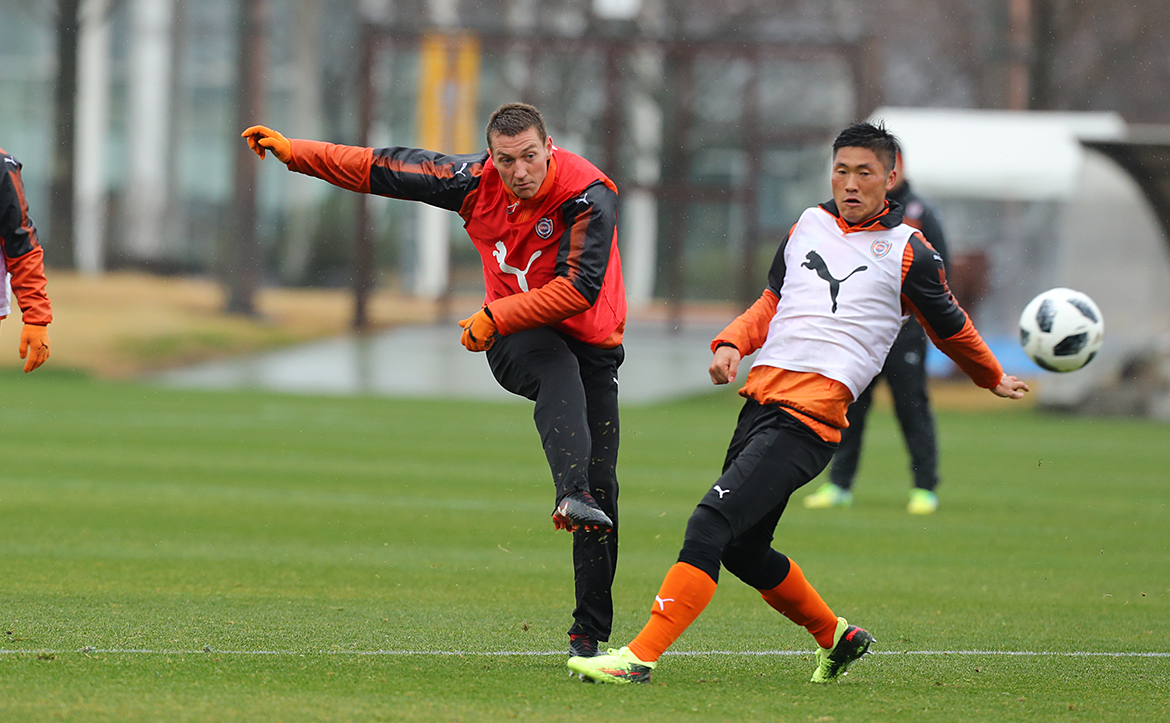 調子は上がってきているが、まずは自分のペースでやること。キャンプは3年ほどケガが続いていたが、今年はコンディションが良く、全ての練習に参加できている。そこはいつもと違うところ。監督が代わって、これまでとは違うメニューになっているが、自分のプレーをやることを心がけている。コンディション良くやっていけば、チャンスは来ると思う。今年はFWのポジションの選手は多いが、自分と同じようなタイプはいない。色々なことをやろうとせず、自分のプレーを見せていくことが大事なのと、それを続けていくこと。明日の練習試合は、ボールを受けることや、味方の選手とのコンビネーションで上手くゲームを回せるような形を見せたい。今年は全試合に絡んで、得点やチャンスを多く作れるようにしたい。
