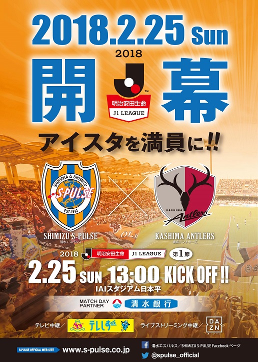 エスパルスでは、ホームゲーム【2月25日(日)13:00 鹿島アントラーズ戦@IAIスタジアム日本平】の試合告知のため、JR静岡駅、草薙駅、清水駅、沼津駅、静岡鉄道新静岡駅、新清水駅の6駅にて試合告知チラシの配布を実施いたします。