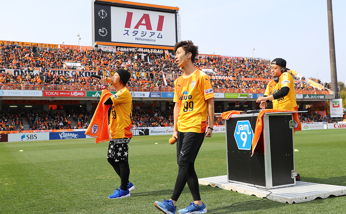 また、サポーティングアーティスト「Jam9」も来場し、2018サポートソング「日本平」をピッチでライブ披露!試合前のスタンドを盛り上げてくれました。