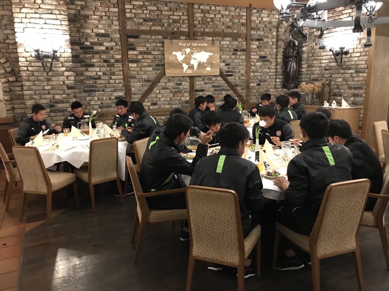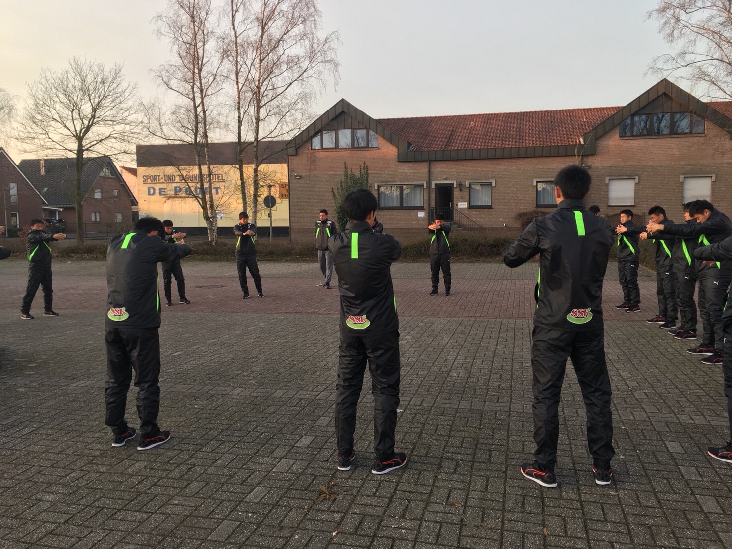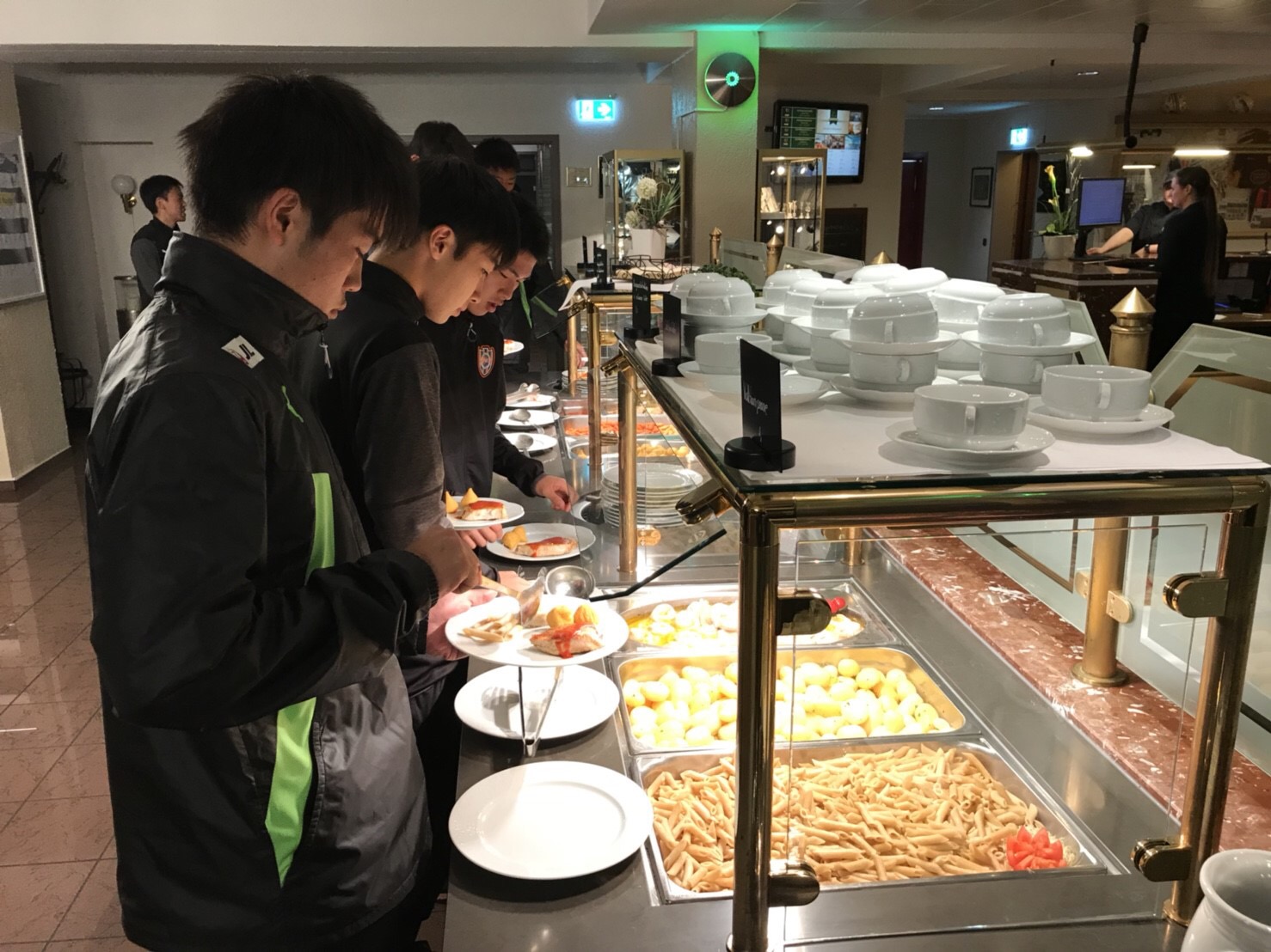 翌14日、成田空港11時発の日本航空便にて、約12時間をかけフランクフルト空港に到着しました。そこから4時間のバス移動をして、昨年も宿泊させて頂いたキャンプ地 オランダとドイツの国境に位置する都市ゴッホにあるDe Poort Sport & Tagungshotelに到着。時差の関係や長時間移動の疲労を考慮し、この日の夕食後は早めに就寝し体を休めました。