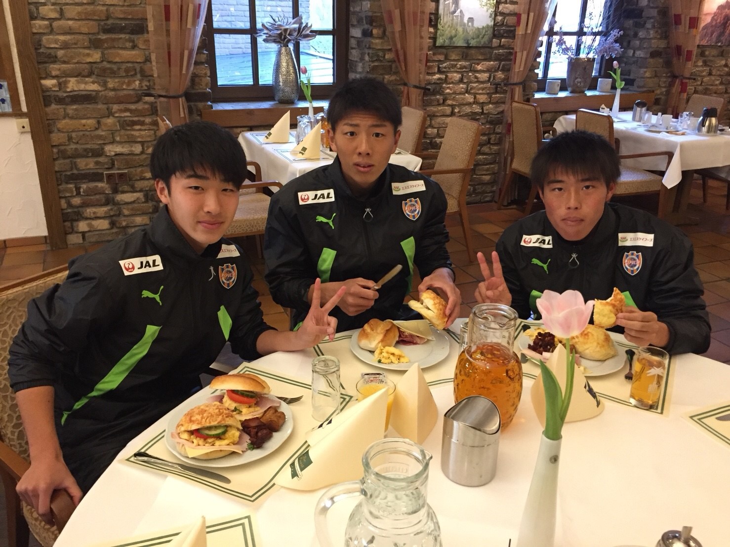 元気に食事をする選手たち ©︎︎︎S-PULSE