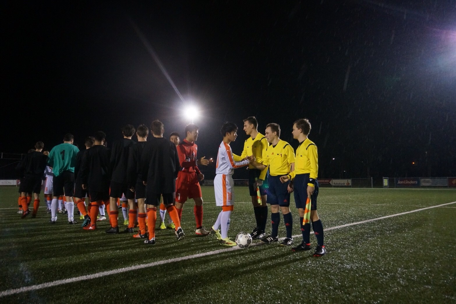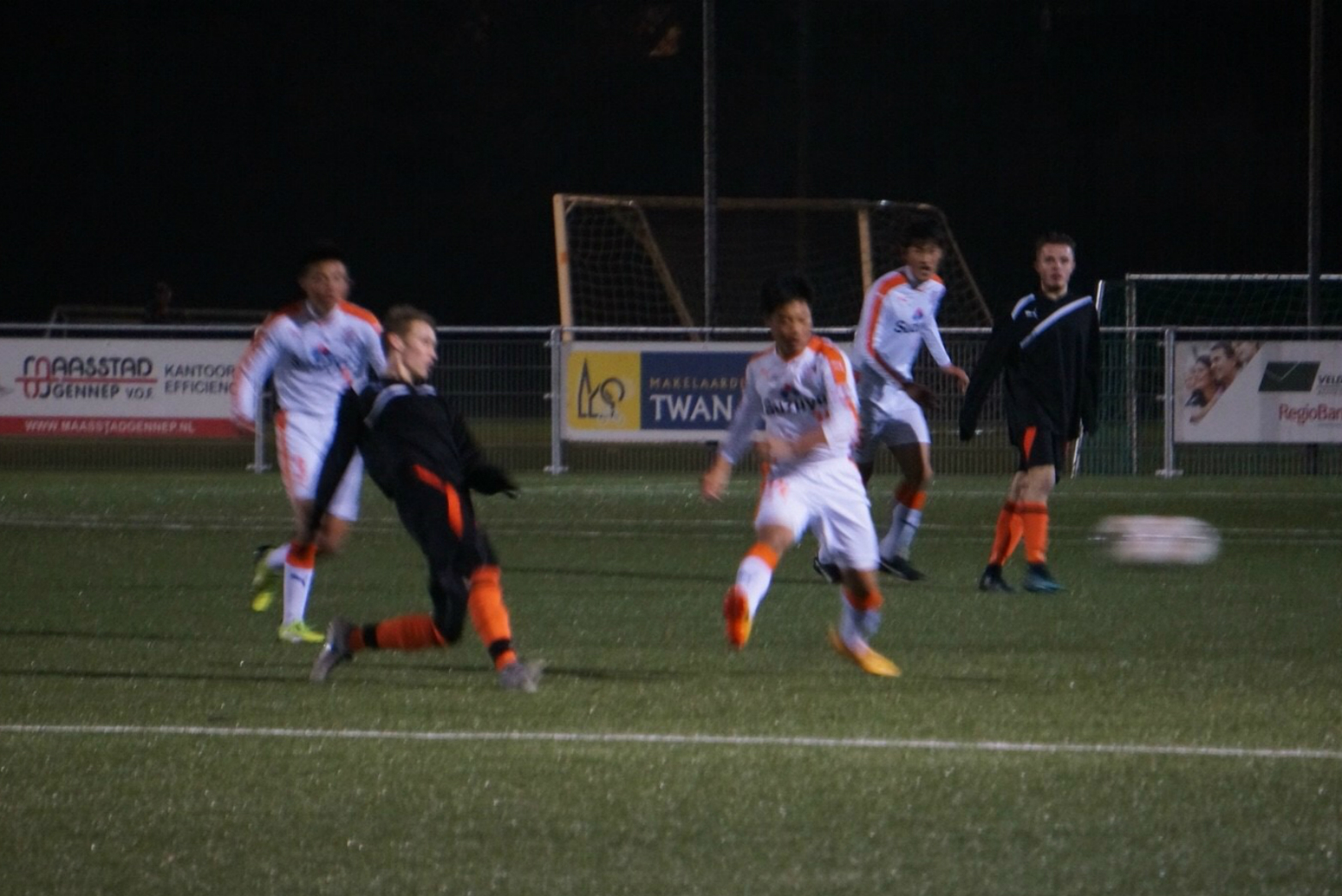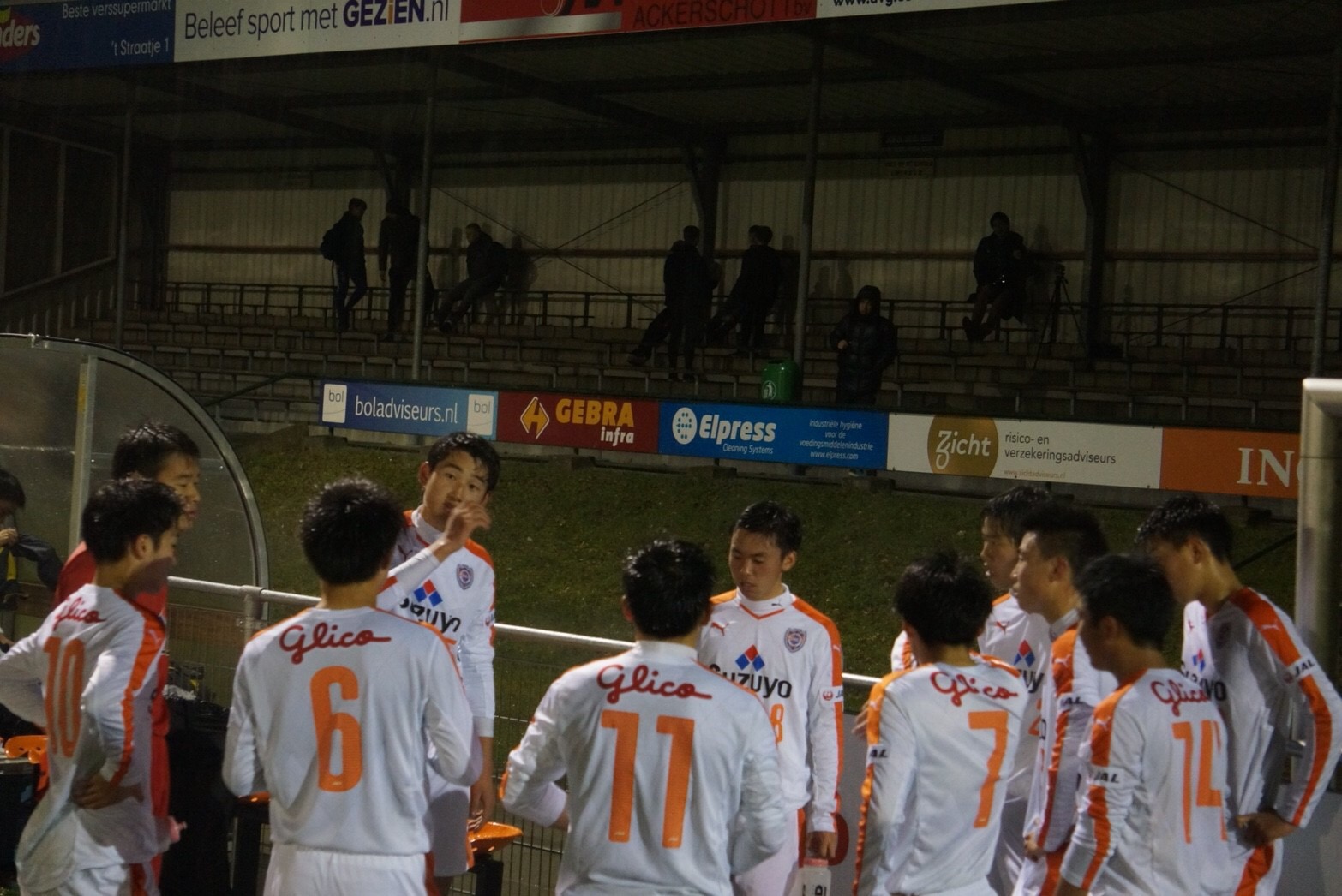 本日の試合の相手は、当初の予定では SV Straelen U19でしたが、体調不良の選手が多く出てしまったとの理由で、急遽キャンセルに。その代替として、午前にトレーニングをしたグラウンドのホームチーム、 Vitesse08 GENNEP の成人チームが相手となり、午後8時のキックオフで試合が開始されました。体格では相手が勝る状況でしたが、徐々に相手のスペースを使えるようになりました。メンバーが変わった後半になると、相手に疲労が見えたこともありましたが、こちらがポゼッション率を高めて、チャンスを伺いながら、テンポの良いボール回しから効率よく得点を重ねることができました。最終的に本遠征の初戦は、5-0の勝利で良いスタートを切ることができました。