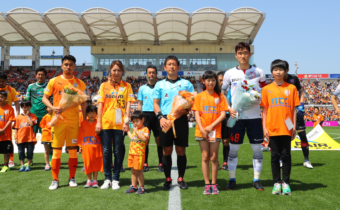 主審・両チームキャプテンへ花束贈呈 ©︎︎︎S-PULSE