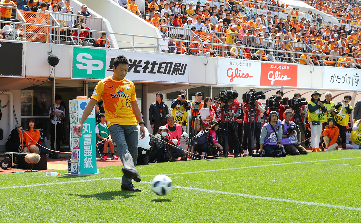 アイ・テック大畑大輔社長によるキックイン ©︎︎︎S-PULSE