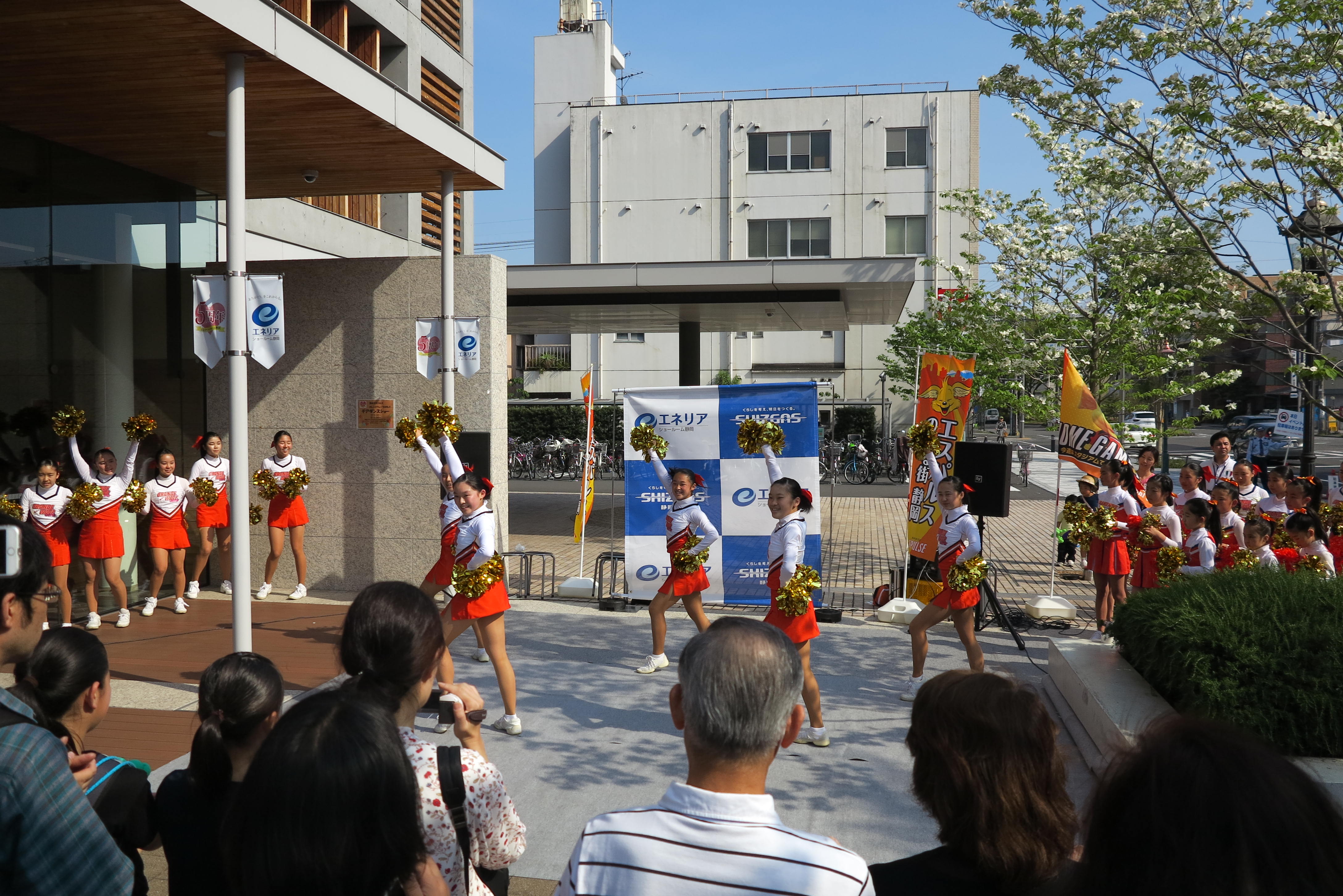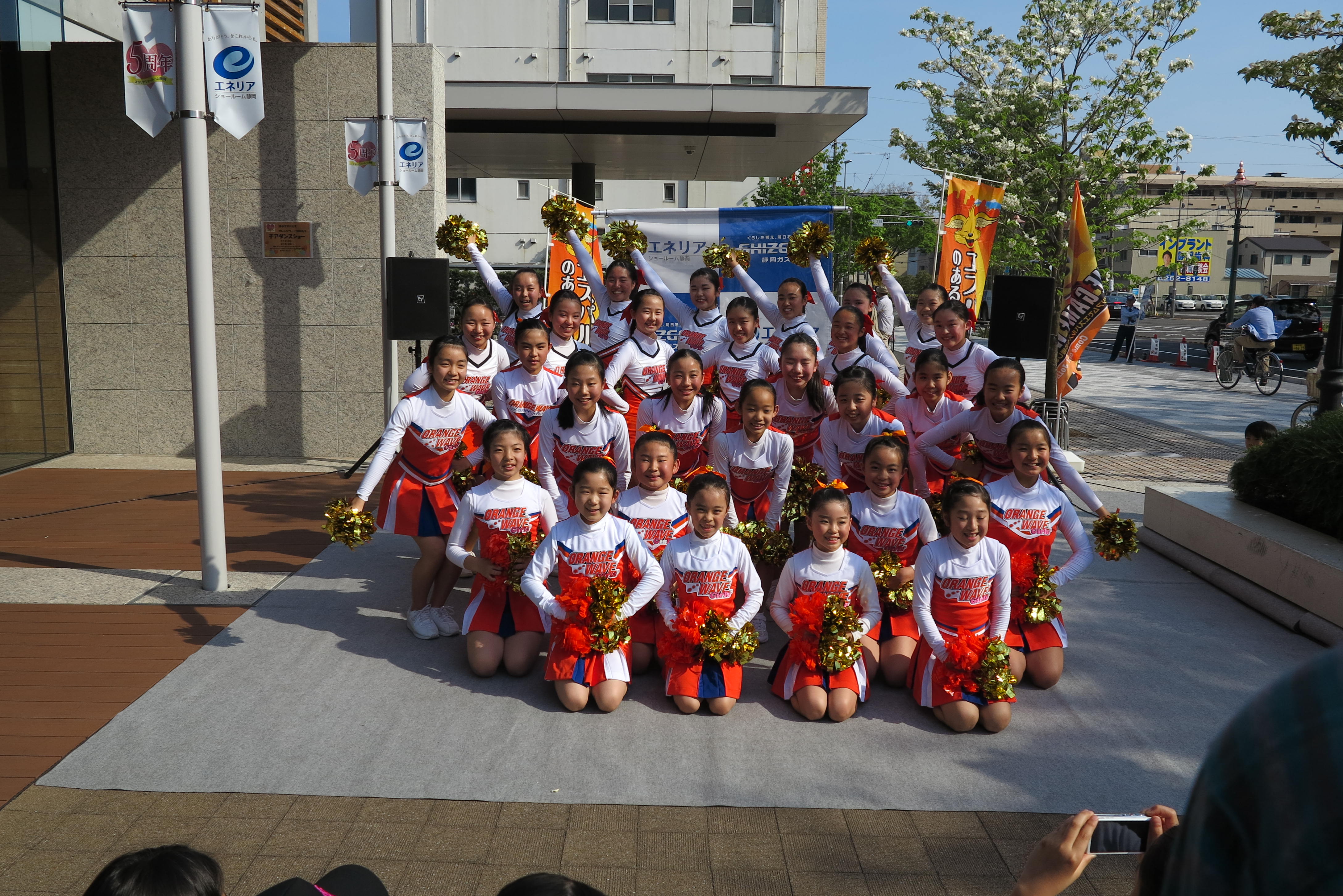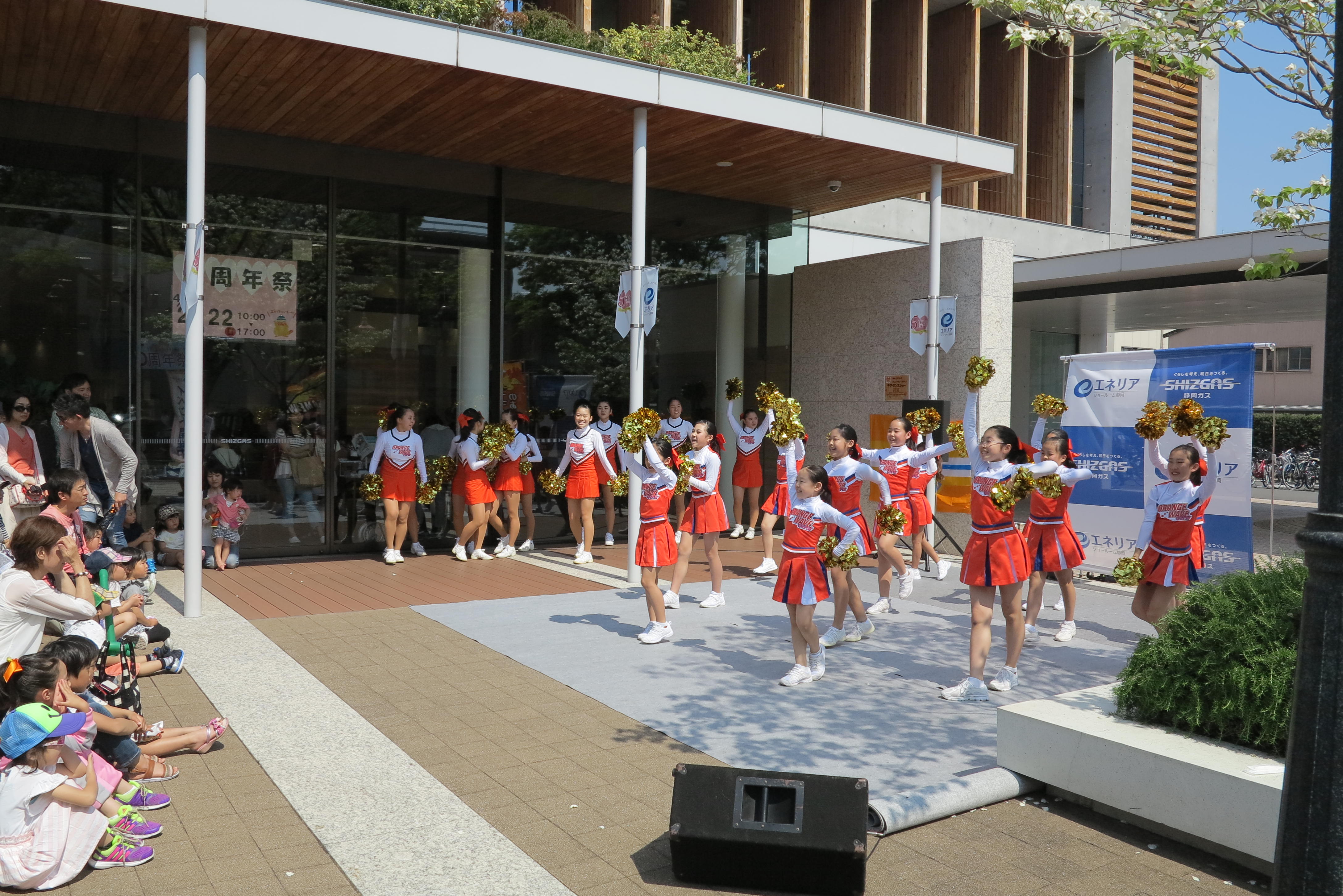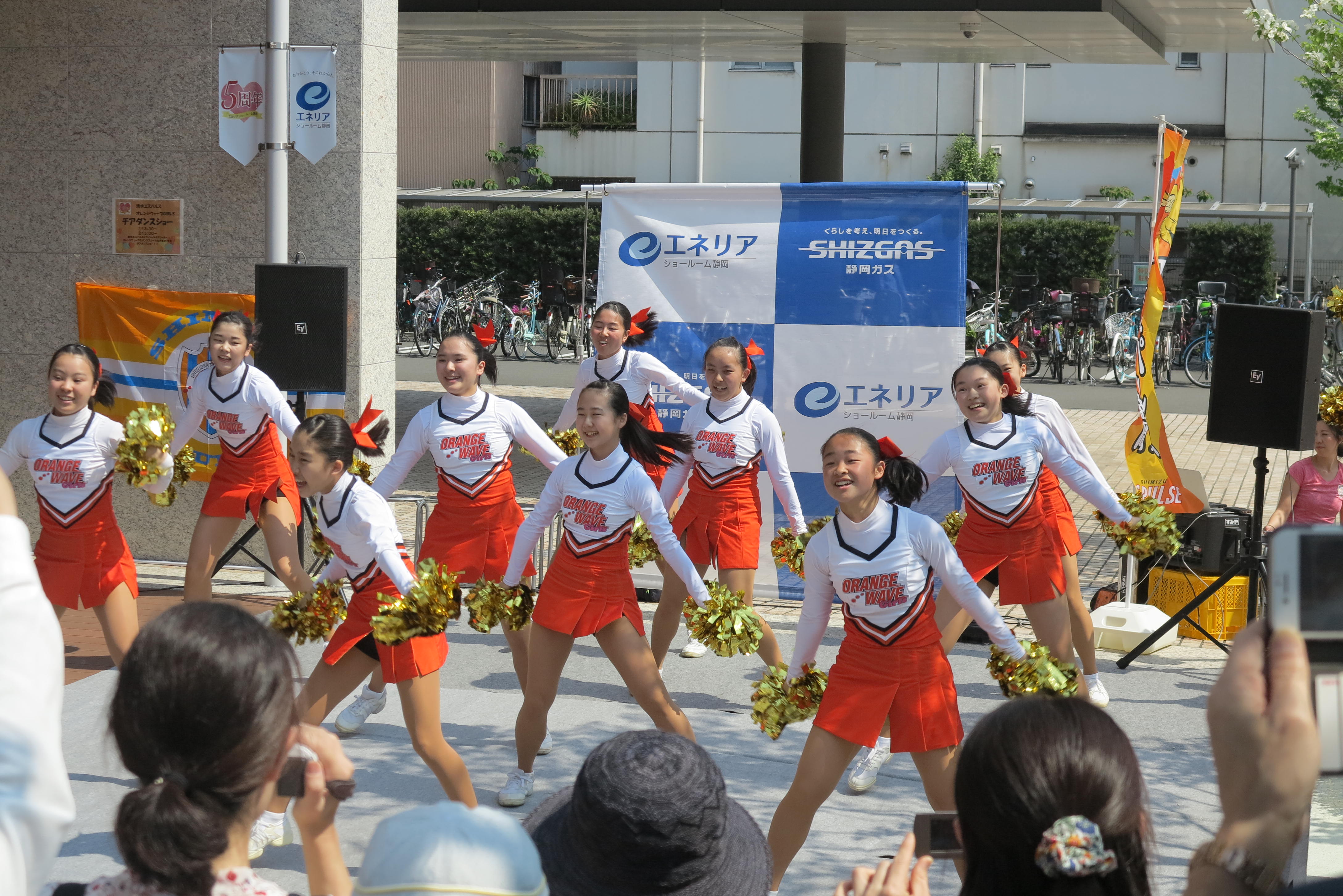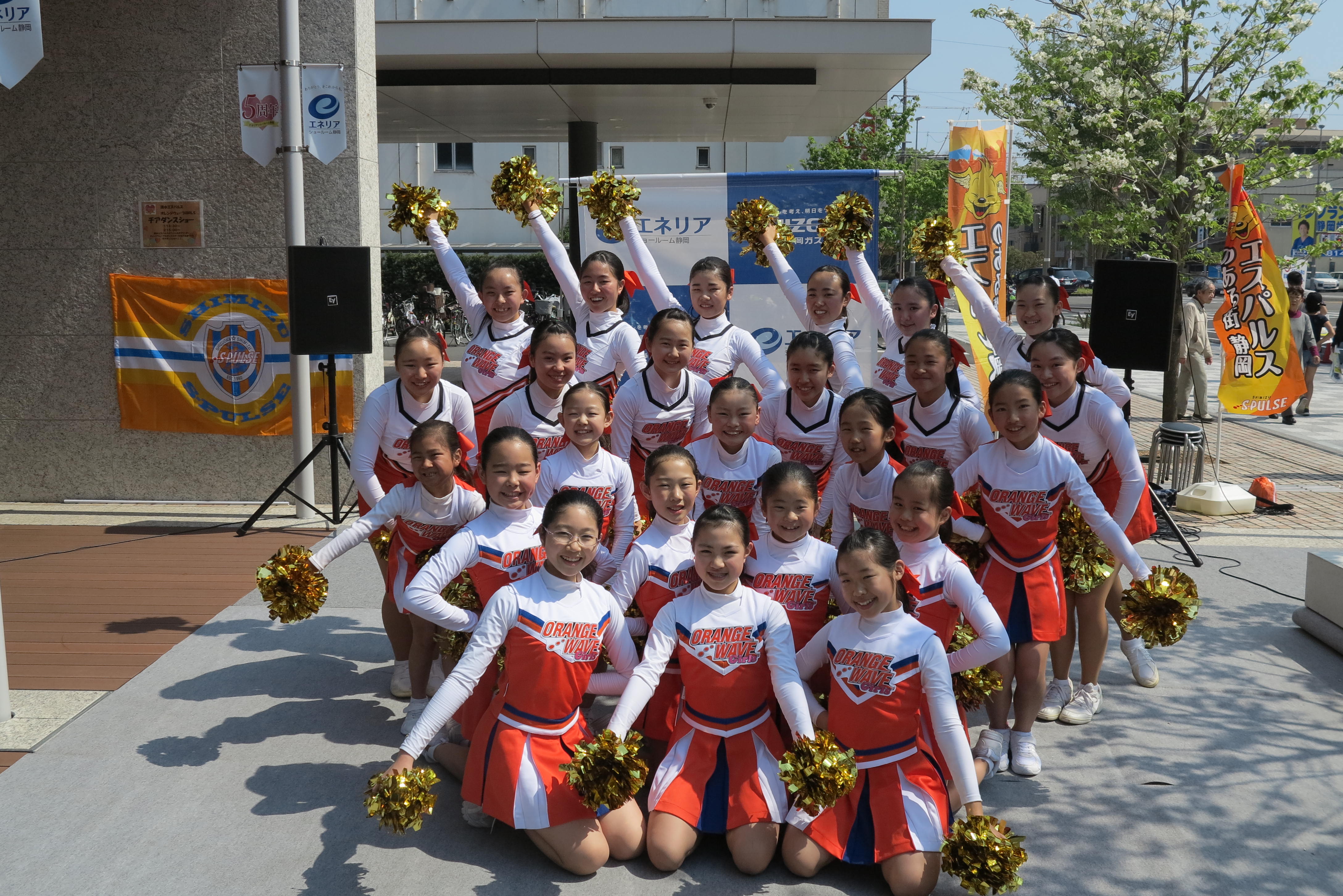 エスパルスオフィシャルチアリーディングスクール生のオレンジウェーブガールズが、4月22日(日)静岡ガスエネリアショールーム静岡で開催された『エネリアショールーム静岡5周年祭』に参加しました。