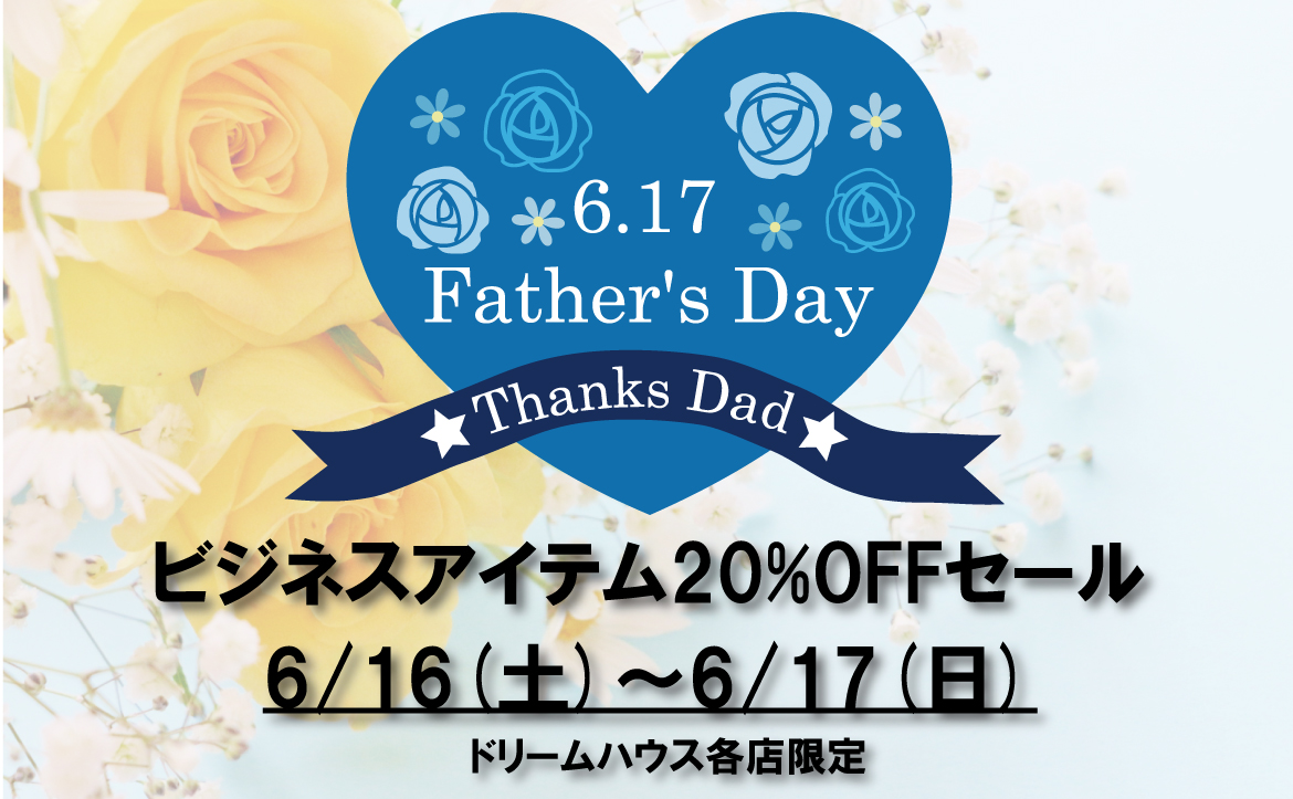 ドリームハウス各店限定で明日6月16日(土)と17(日)の2日間、父の日のプレゼントに最適なビジネスアイテムが20%オフとなる『父の日キャンペーン』を実施します。このキャンペーン期間にぜひお買い求めください。皆様のご来店、お待ちしております。