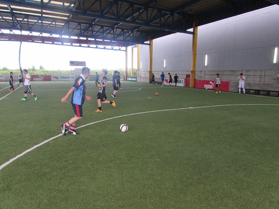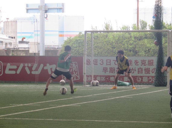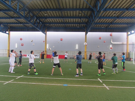 次にセンターリングからのシュートを行いました。はじめはコーチがセンターリングをしてそのボールに合わせましたが、途中からはセンターリングもシュートも参加者の方々が行いました。ファインゴールもたくさん出て拍手が何度も起こりました。