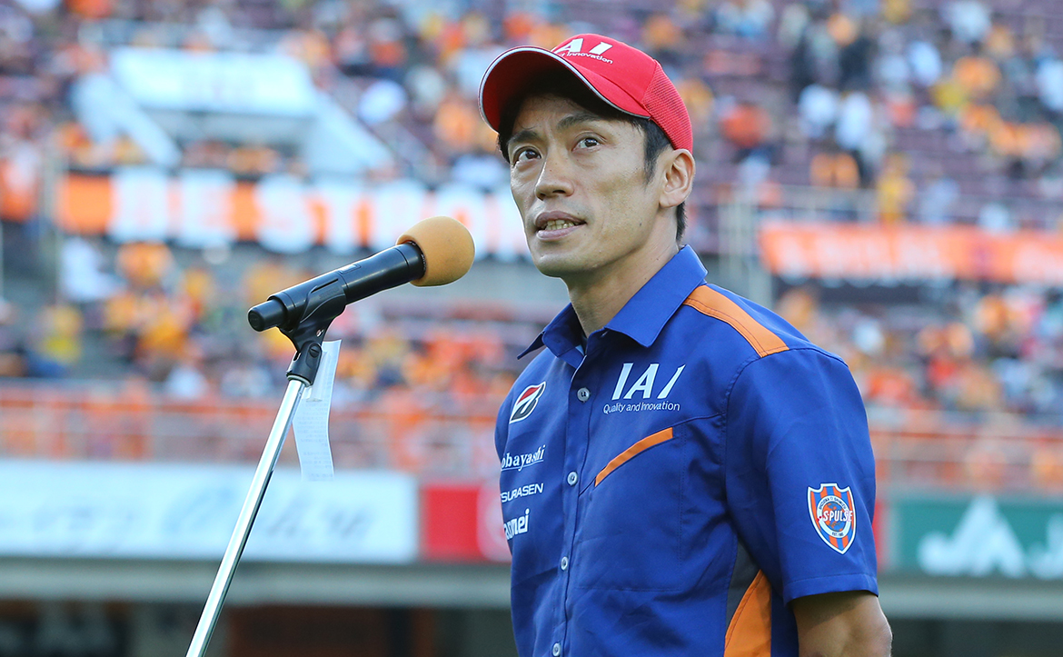 勝利チーム賞を受け取る河井陽介ゲームキャプテン ©︎︎︎S-PULSE