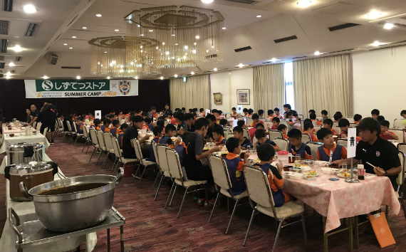 暑い中でもたくさん動き、たくさん食べて、たくさんの仲間を作り、子どもたちは初日の活動からたくましく成長してくれたと思います。明日も充実したキャンプになる様、コーチ・スタッフ一同、全力で子どもたちをサポートし、一緒に楽しい思い出をつくっていきたいと思います。