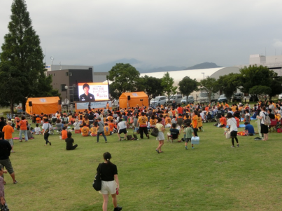 3.近隣に住宅、商業施設がございますので、大声や鳴り物等による応援は禁止です。また、横断幕、大型フラッグ等による応援も、周りの観覧者の迷惑となりますので禁止させていただきます。