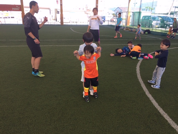 当日は天候にも恵まれ、普段スクールに通う兄弟スクール生の応援もあり、参加してくれた皆様は、最初から元気いっぱい動き回ってくれました。教室の最後は、ミニゲーム。数多くのゴールが生まれ、親子で喜びを分かち合っていました。
