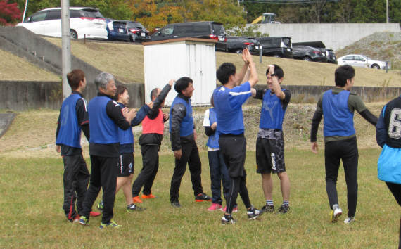最後は6チームに分かれ試合を行いました。総当たりの予選を行い、最後は順位決定戦と合計4試合をエスパルスウォーキングサッカー独自のローカルルール(『エスパルスルール笑顔で楽しまないと反則』)をつくり試合を楽しんでいただきました。