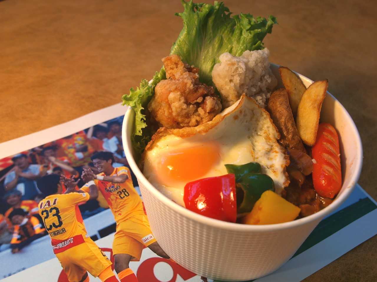 「ガッツリ食べて!スタミナつけて!応援!そして"勝ちロコ"を!」という合言葉のもとに販売中の勝ちロコモコ丼に、『高野豆腐の竜田揚げ』を追加でトッピングいたしました。ホームでの勝利を祈願するとともに、北川航也選手と立田悠悟選手を応援する、さらにボリュームたっぷりでバラエティー豊かな一品となっておりますので、ぜひお召し上がりください。