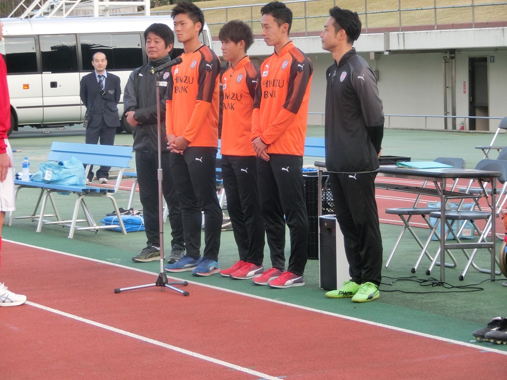 選手からの「今日はとても楽しかったです。今日の楽しかったこと、汗をかいたことを忘れずにこれから辛いことがあってもあきらめずに頑張ってください」というとメッセージでサッカー教室は終了となりました。