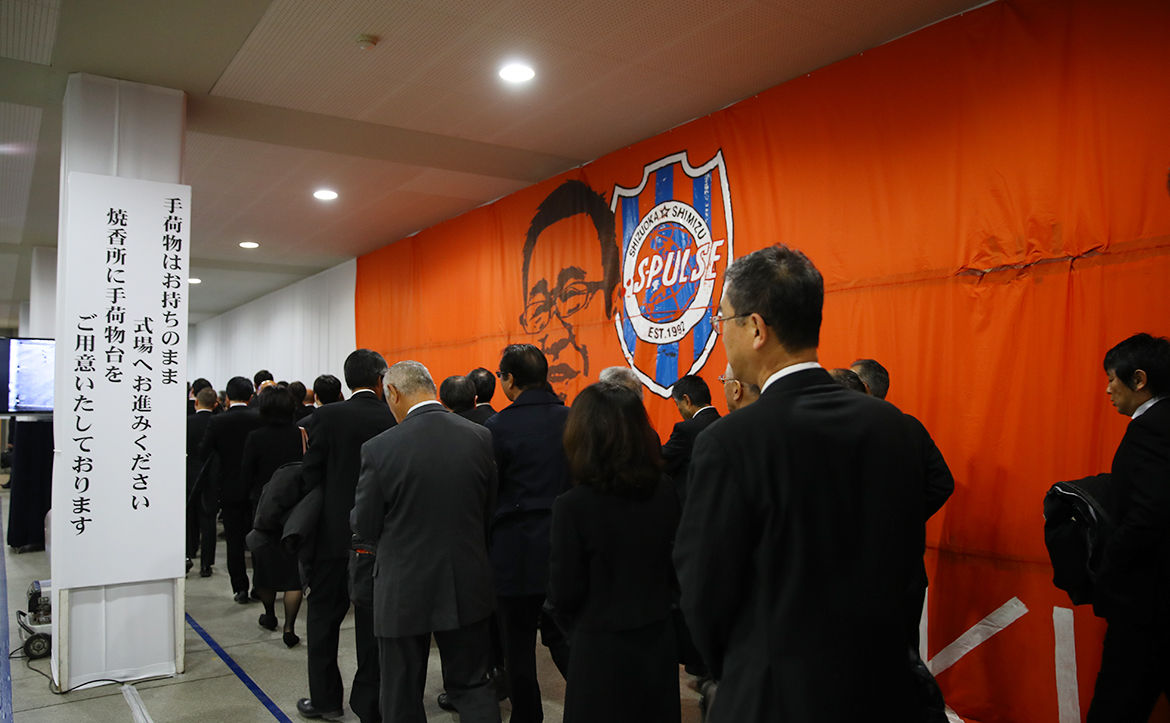 通夜、告別式に約1,500名の方々が弔問の訪れ、エスパルスのみならずサッカー界における功績の大きさを改めて感じました。