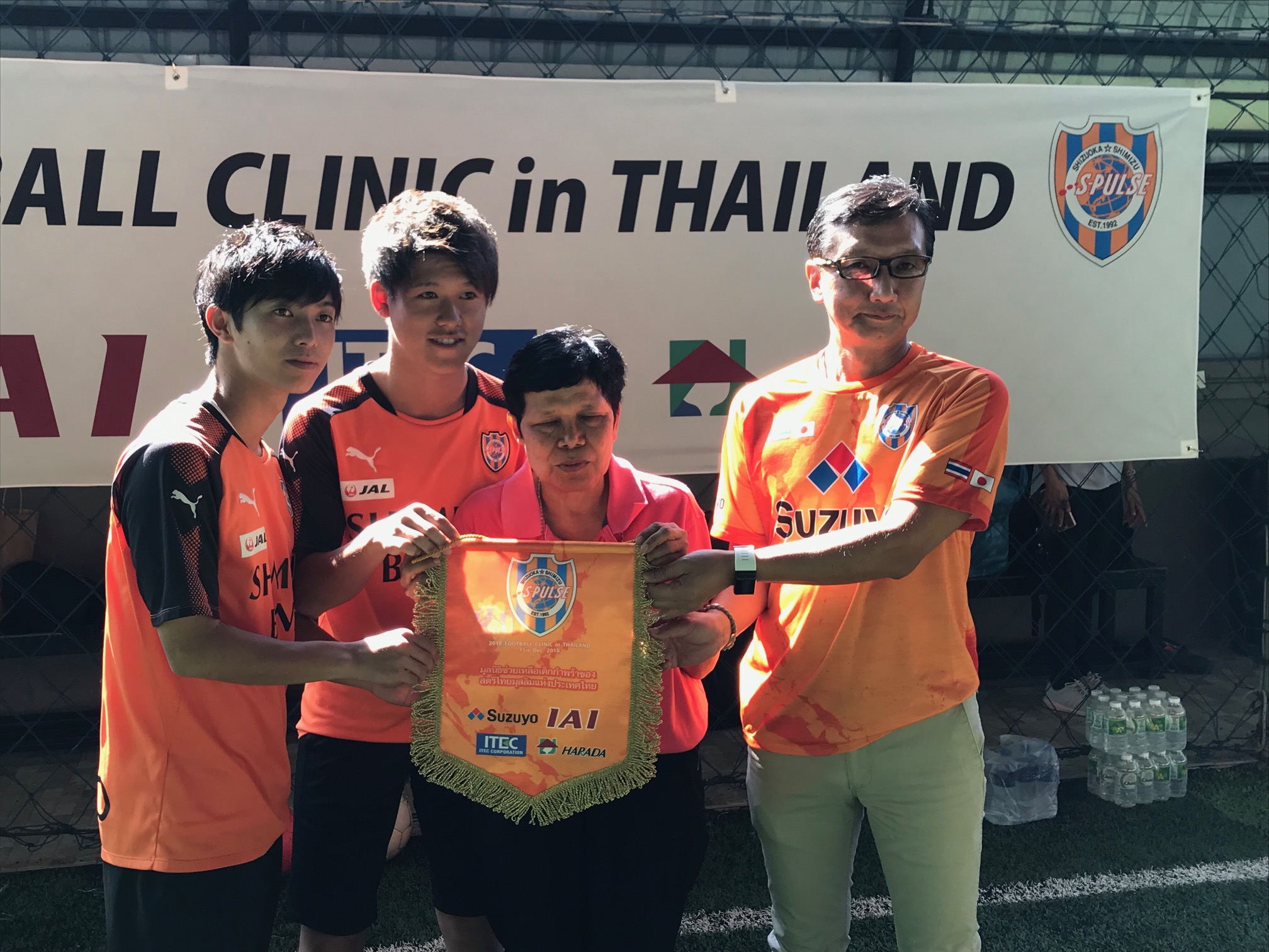 (午前の部)鈴与タイランド櫻井社長と選手たちから施設へ記念タペストリー贈呈 ©︎︎︎S-PULSE