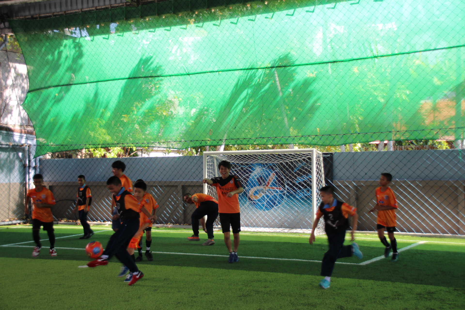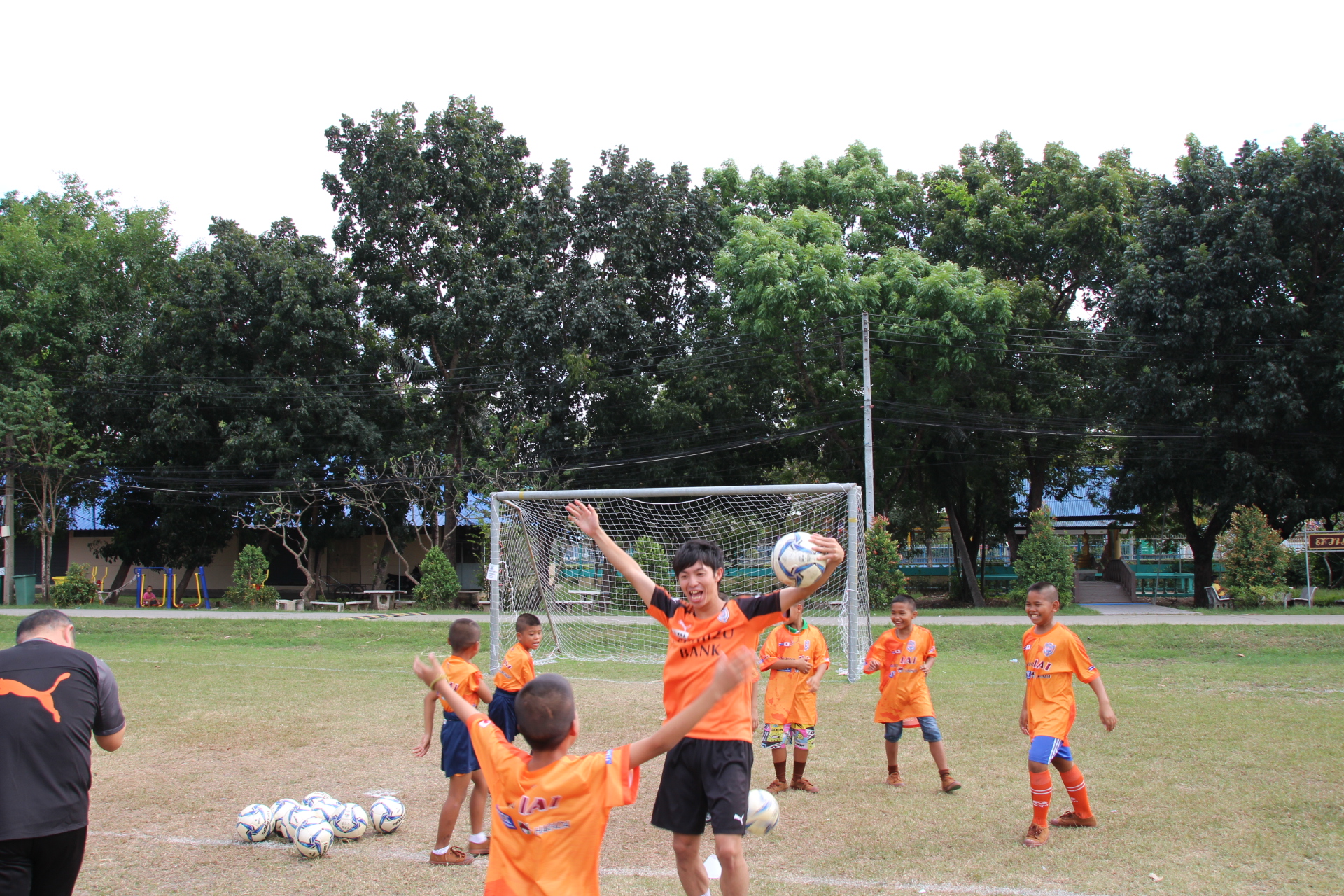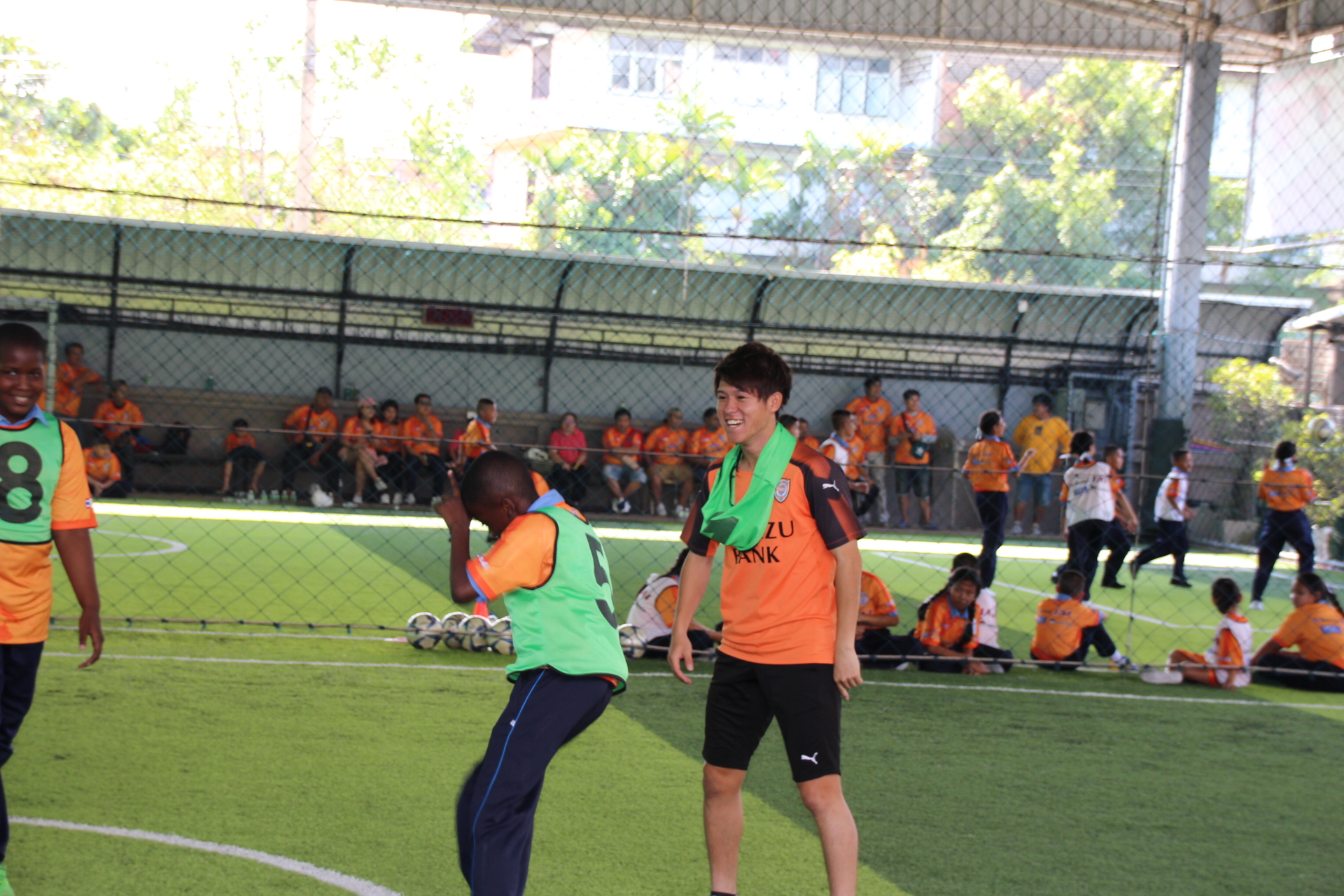 1日目となる15日(土)午前は、ムラニティ・チュワイルアデック・ガムプラーコンサタリー・タイモスリム・ヘーン・プラテートタイを招待して、バンコク市内の「J-Pressフットサルコート」にて実施。午後はノンタブリー県に場所を移し、バーン・デックチャーイ・パケットの子供たちを対象に、同団体施設内の運動場にて実施しました。
