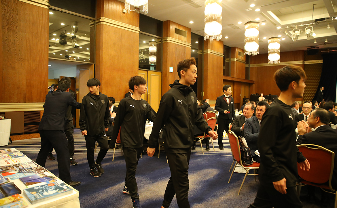 会場が暗転し、スクリーンに昨季のエスパルスのプレー映像が流れて開宴。