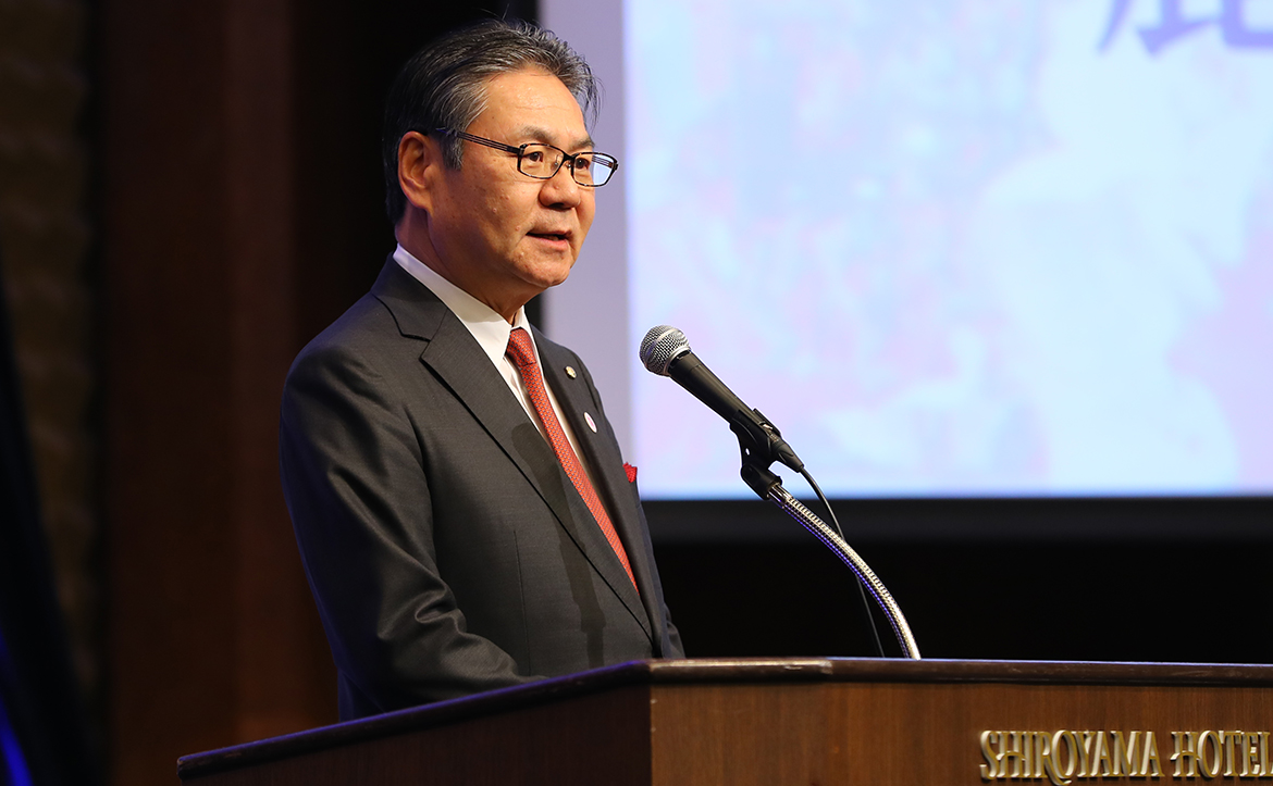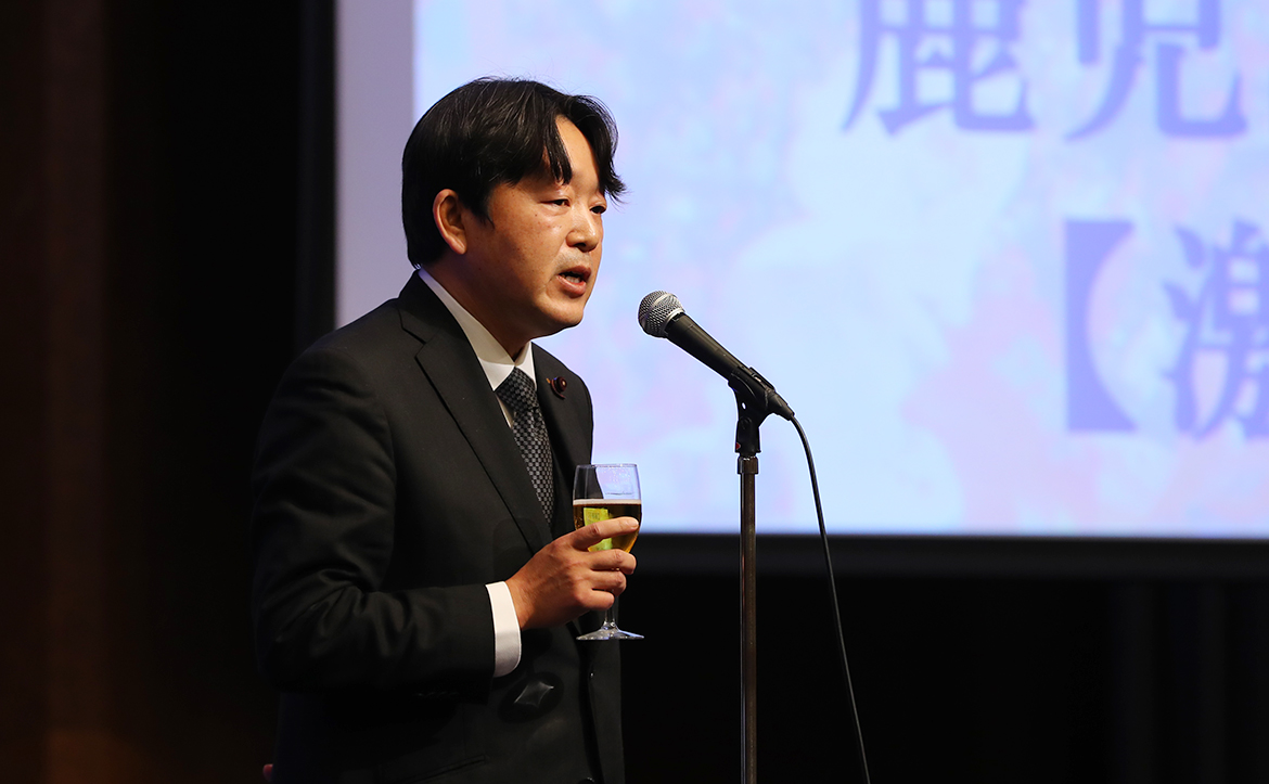 「本日は清水エスパルス後援会激励会がこのように盛大に開催されますことを心からお慶び申し上げます。先ほど、会長の東社長、また副市長の松永様からご挨拶をいただきましたが、このように大勢の鹿児島の後援会の皆さま、また今日は静岡からも私ども多数お邪魔しておりまして、両地域の皆さまが一同に介して静岡県が誇る清水エスパルスをともに激励できる場に参加させていただきますことは大変光栄でございます。ありがとうございます。また、本日ご出席の皆さま方は、日頃より静岡・鹿児島両県の交流拡大に多大なるご支援、ご協力をいただいているところでございます。この場を借りし、厚く御礼を申し上げる次第でございます。